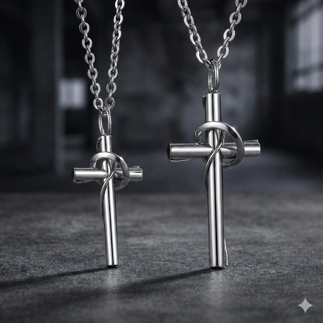 ✅【商品説明】 〇シンプルなのに存在感のある “ツイストクロス” デザインのネックレス。 〇高級アクセで使われる サージカルステンレス316L を 採用し、汗・水に強く、変色しにくく、 金属アレルギーの方でも使いやすいモデルです。 〇立体的なリングとクロスの組み合わせが胸元で輝き、 “普段使い・デート・プレゼント” のどのシーンにも相性抜群。 〇ペアネックレスとしても人気のデザインです。 ✅特徴 ✦ 高耐久ステンレス316L(医療用)  汗・水・摩擦に強く、錆びにくい。お風呂・運動でもOK ✦ 金属アレルギー対応(ニッケルレス) ✦ 立体ツイスト×クロスデザイン  他と被らない・高級感がある ✦ 重厚シルバー色で存在感◎ ✦ どんな服にも合わせやすい(ストリート/キレイめ) ✦ ペア使用・ギフトにも最適 ✦ チェーン付きで届いてすぐ使え ✅ サイズ情報 ★メンズ ・トップ:縦 約40mm × 横 約21mm ・チェーン:50cm ★レディース ・トップ:縦 約30mm × 横 約16mm ・チェーン:50cm ★素材:サージカルステンレス316L ★カラー:シルバー ★チェーン種類:ブランドチェーンにも使われる「アズキチェーン」 ★商品には、アクセサリー用巾着袋セットしてます。 在庫少なめのため、気になる方はお早めに! 男女兼用のため、プレゼントにも人気です。 十字架 ネックレス メンズ レディース シルバー アクセサリー ステンレス 316L サージカルステンレス 金属アレルギー対応 クロス ペンダント ユニセックス ペアネックレス プレゼント 韓国ファッション ストリート系 キレイめ モード系