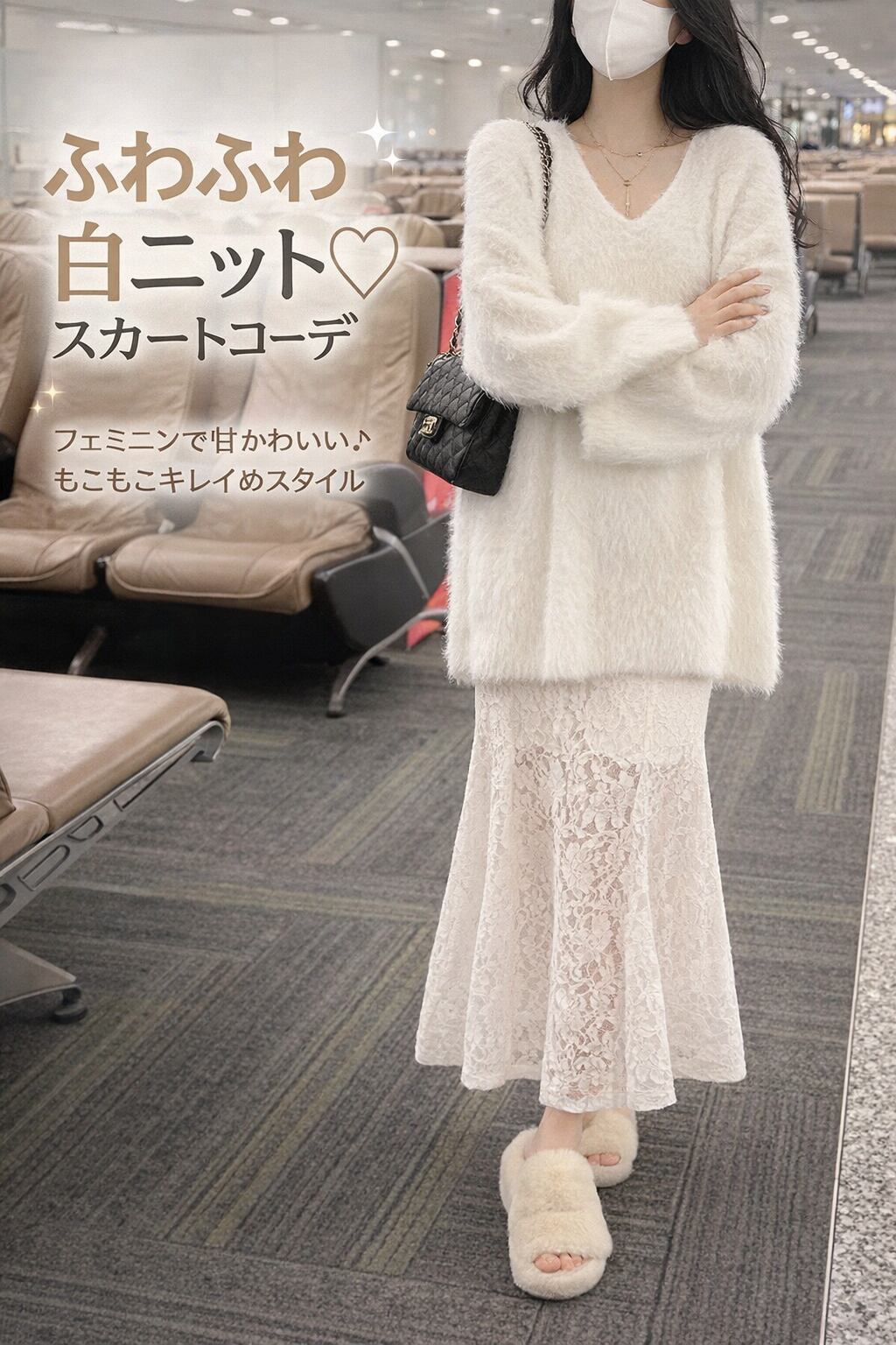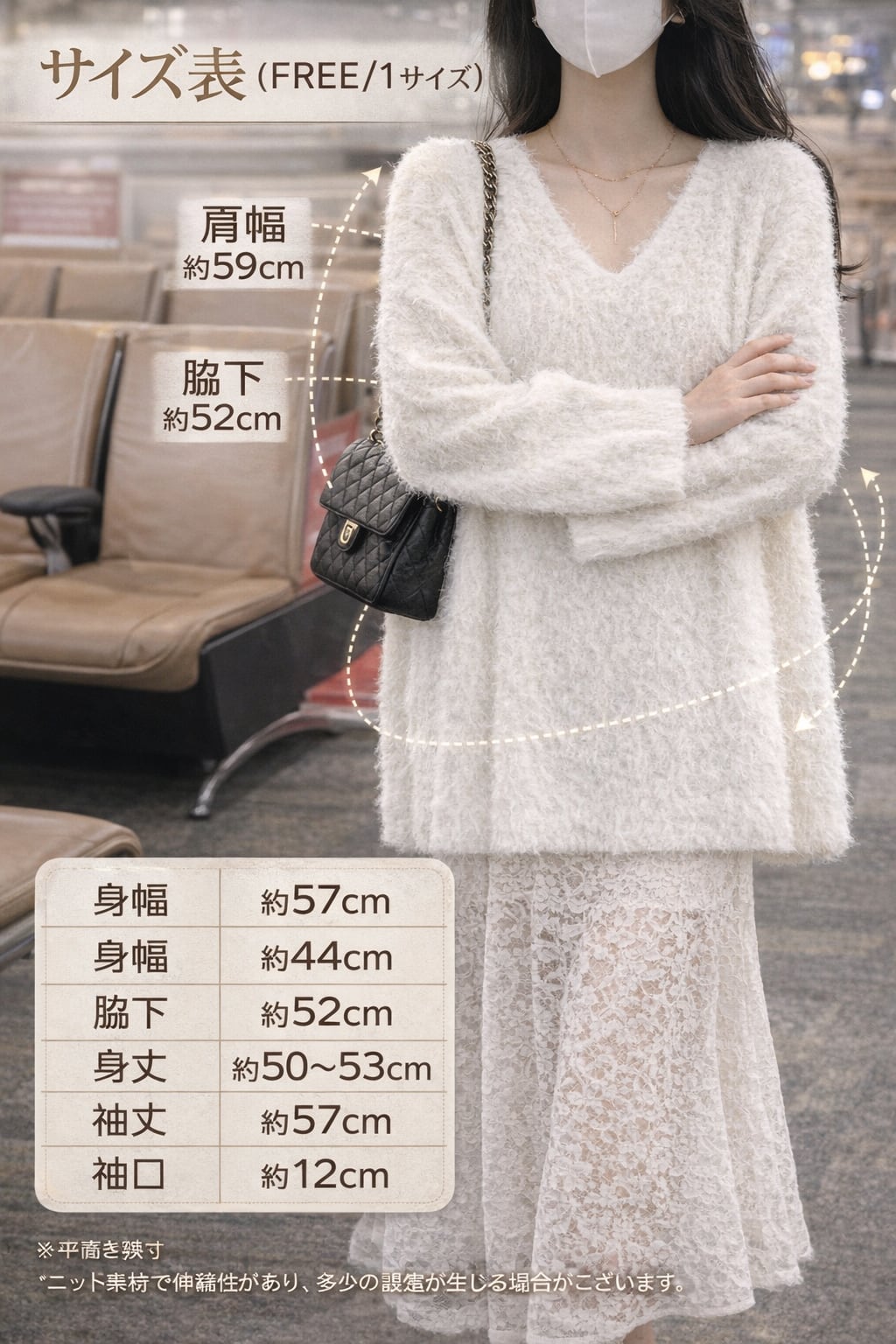 【即日発送】Vネック シャギーニット オーバーサイズ ふわふわ 大人可愛いシャギーニット『黒 白 紫』