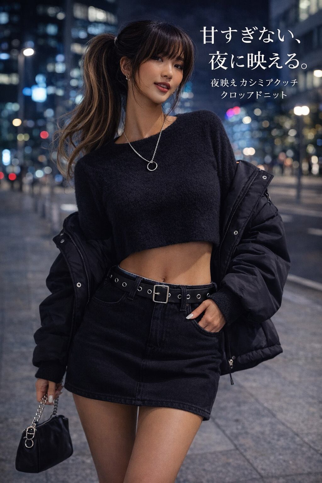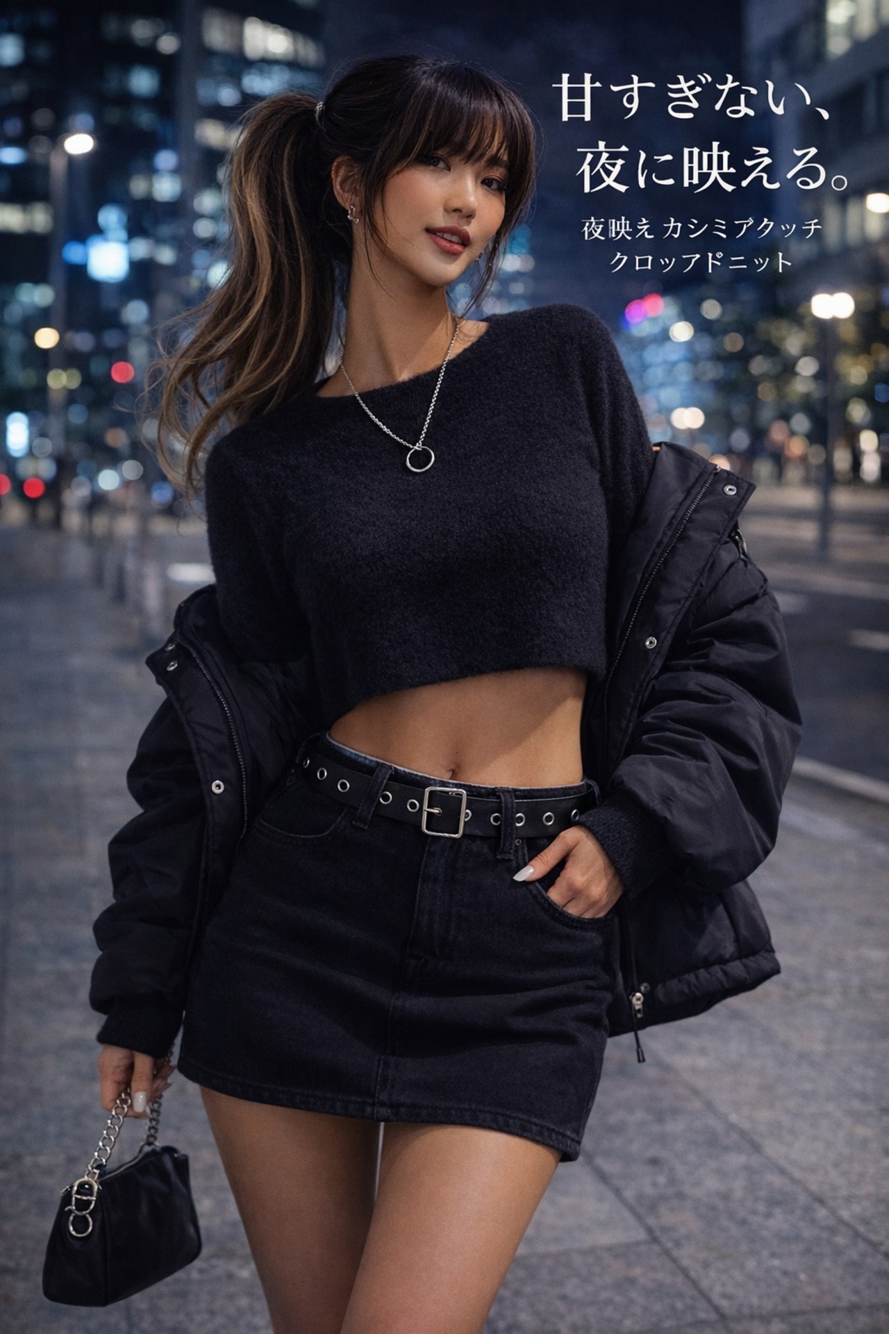 カシミア タッチ クロップド ニット トップス|黒 の あざとさ・白 の 上品