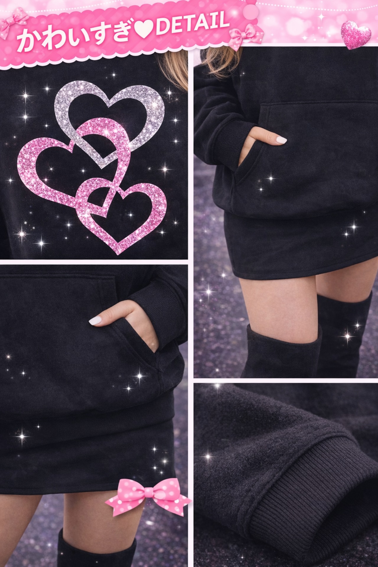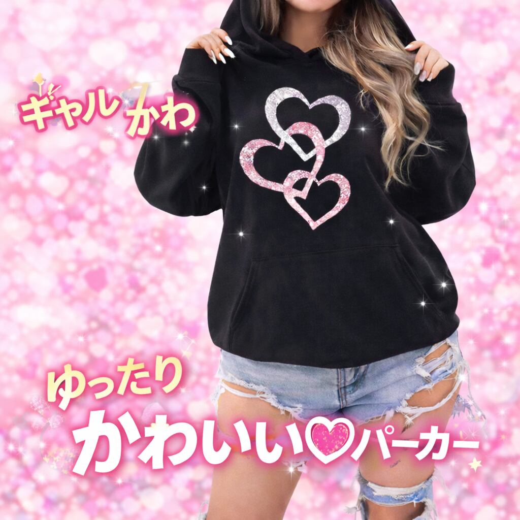 〇「大人 ギャル 風 ブラック ハート グリッターパーカー」は、