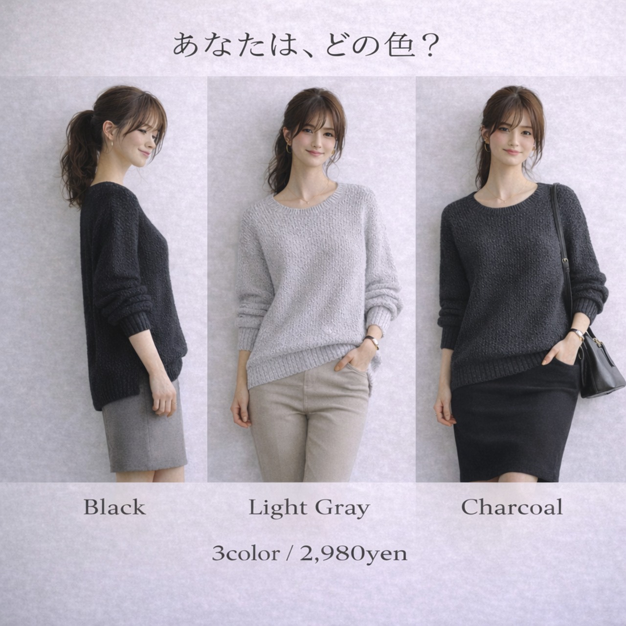 ライトグレー、チャコールの3色展開。