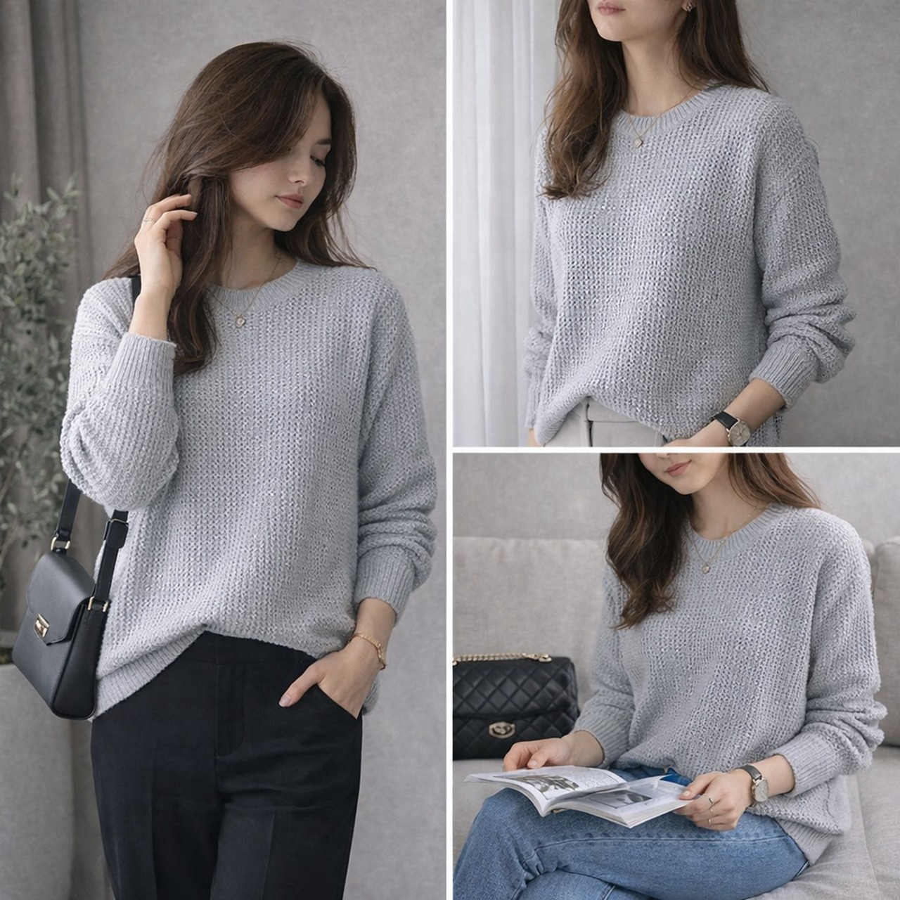 『3color オーバーサイズ ワッフル編み 春ニットトップス』