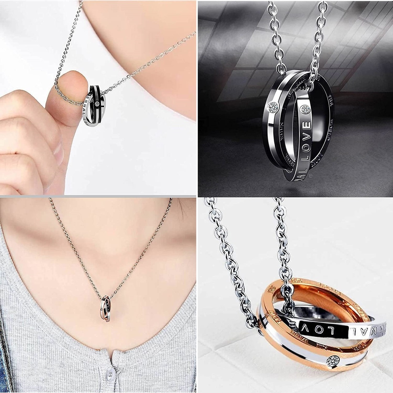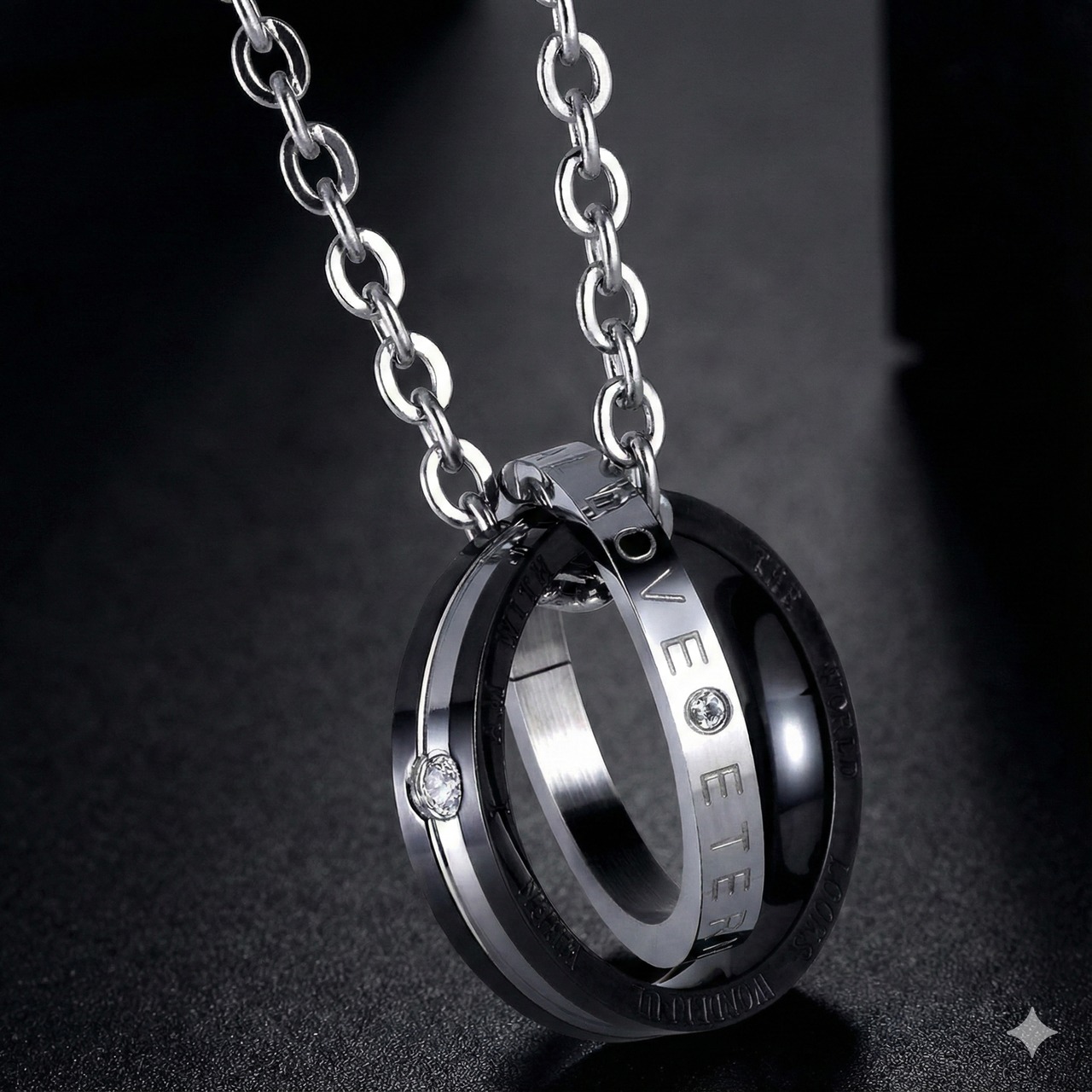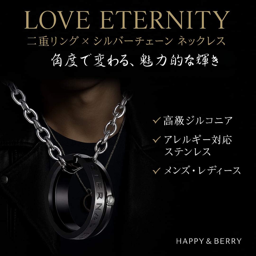この機会にぜひ、スタイリッシュな《二重リング × シルバーチェーン》LOVE ETERNITY ネックレスを手に入れてください!