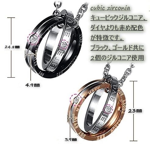 ステンレス ペアリング ネックレス レディース ジルコニア付き LOVE 刻印 シルバー×ゴールド永遠の愛を刻む 重なる2連リング・ジルコニア輝くステンレス