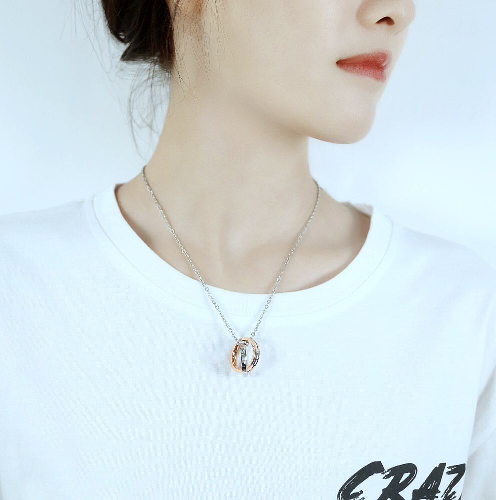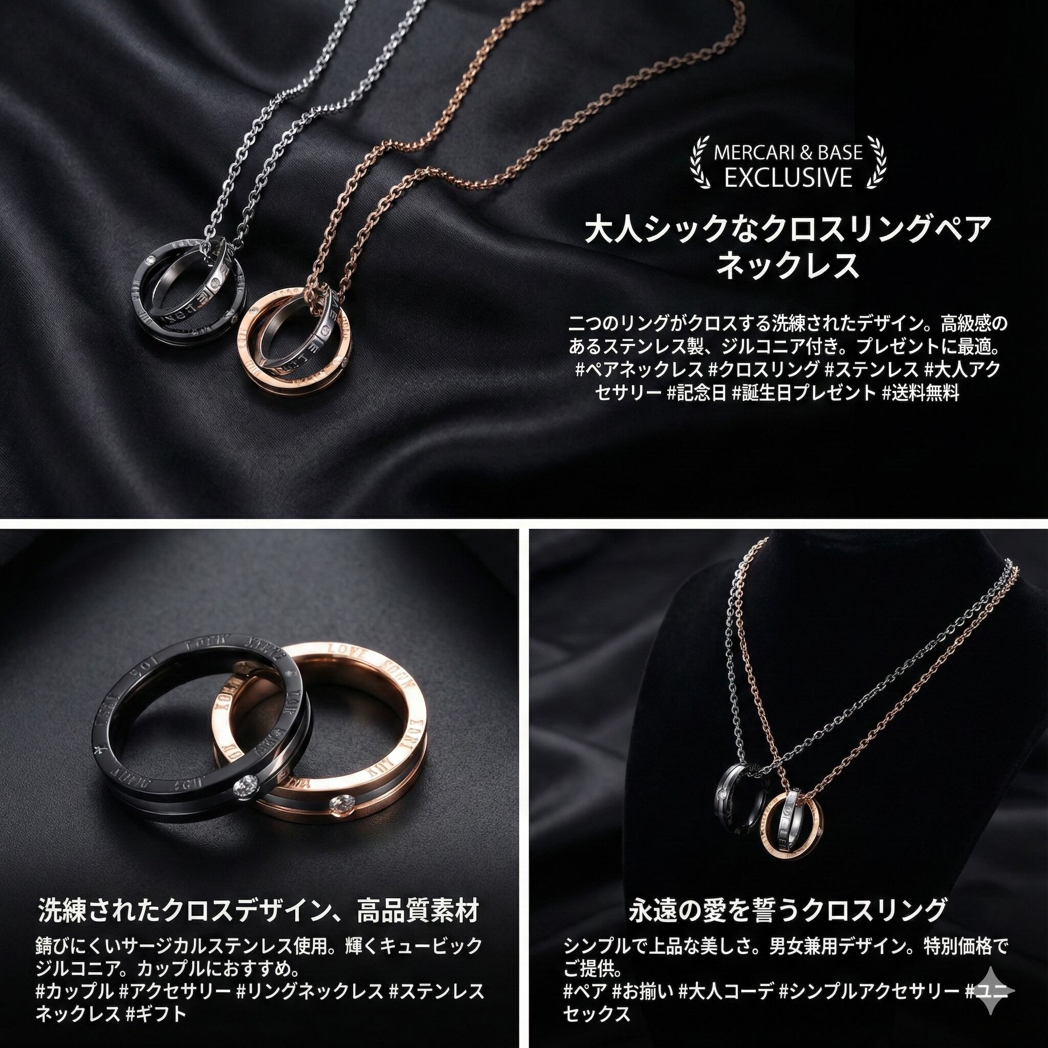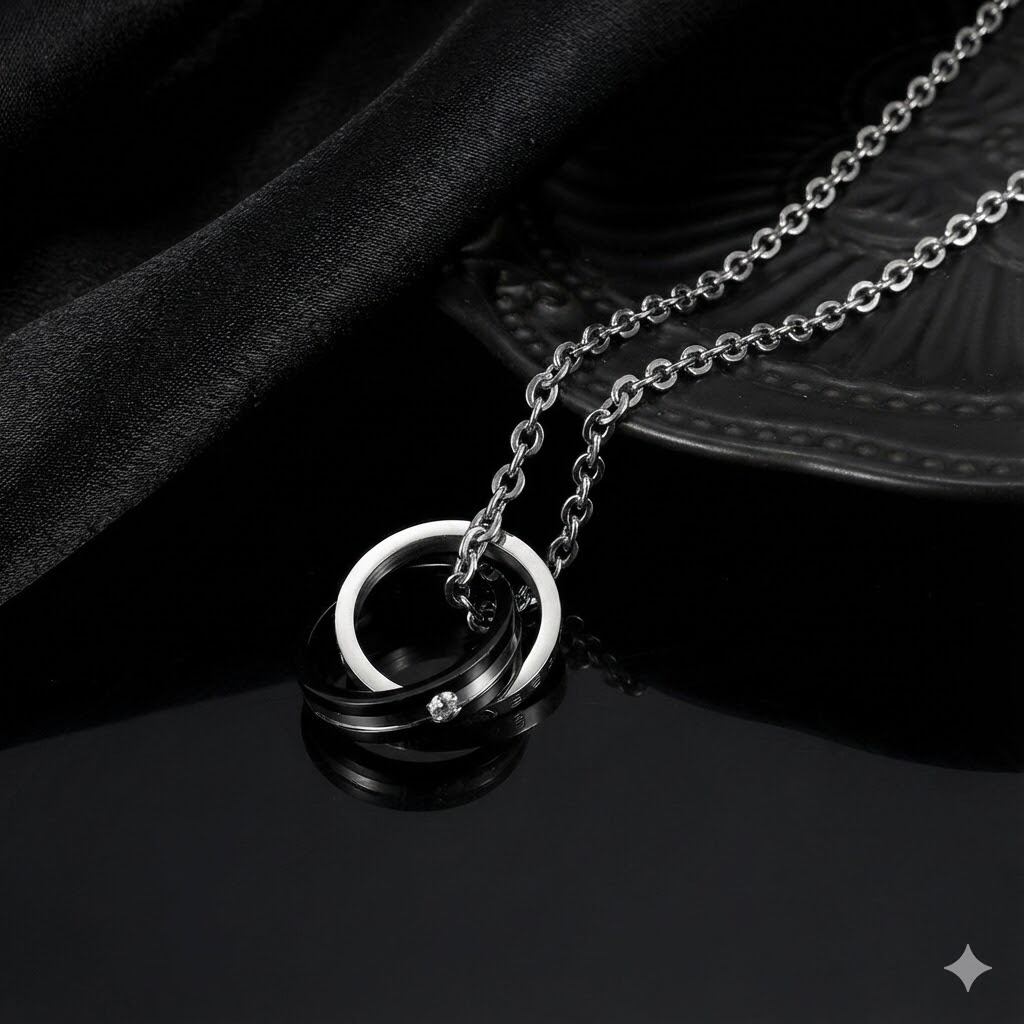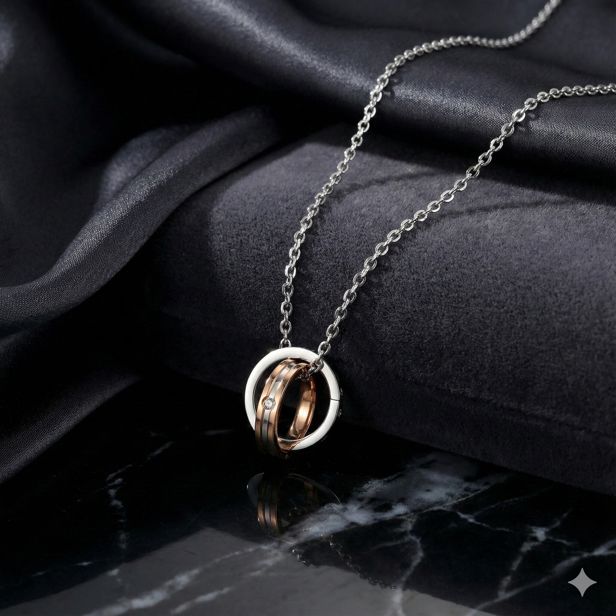 『Eternal Ring Harmony – 永遠をつなぐペア リング ネックレス』2連 リング セット ジルコニア 恋人 サージカル ステンレス 316L