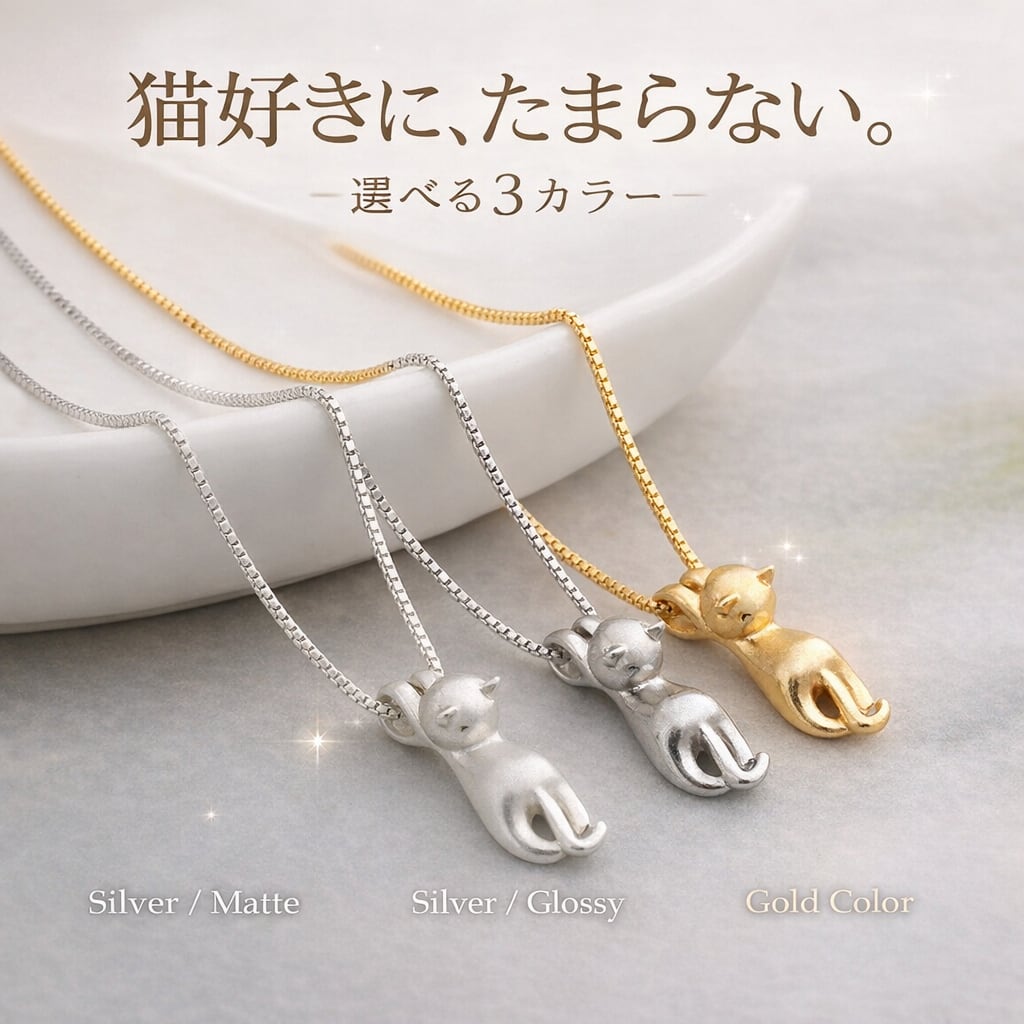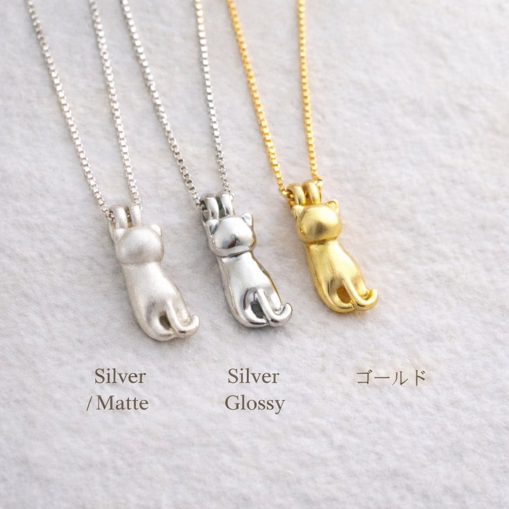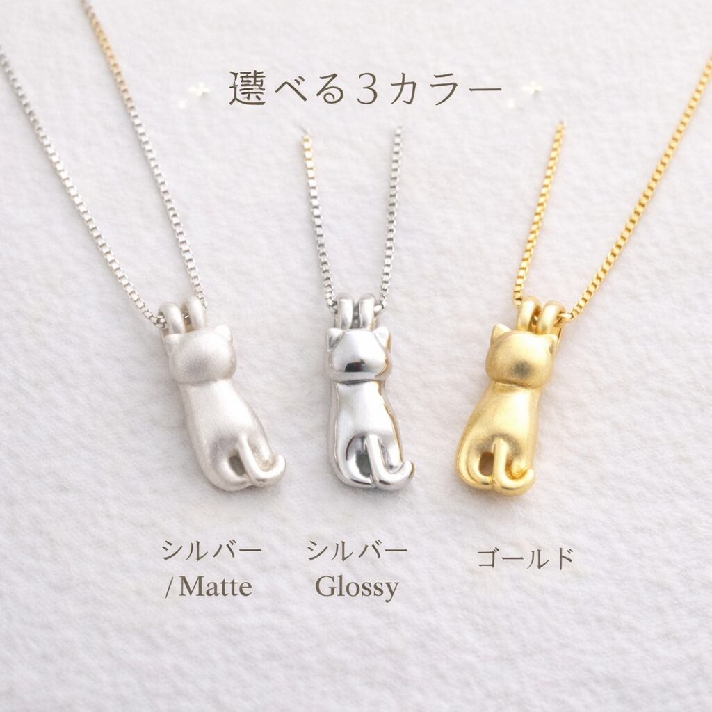 ちょこんと猫モチーフ ネックレス|選べる3カラー(Silver Matte/Silver Glossy/Gold)