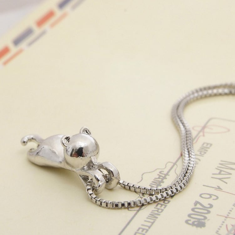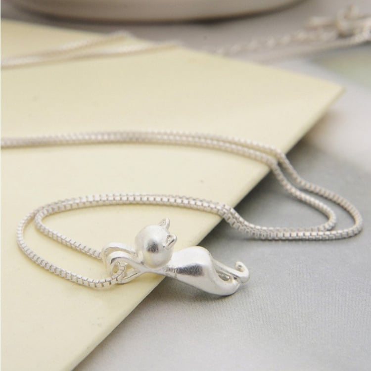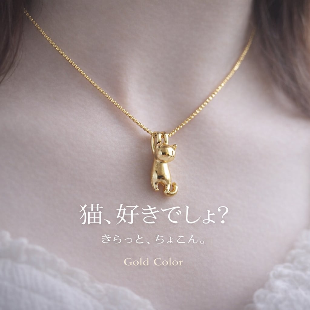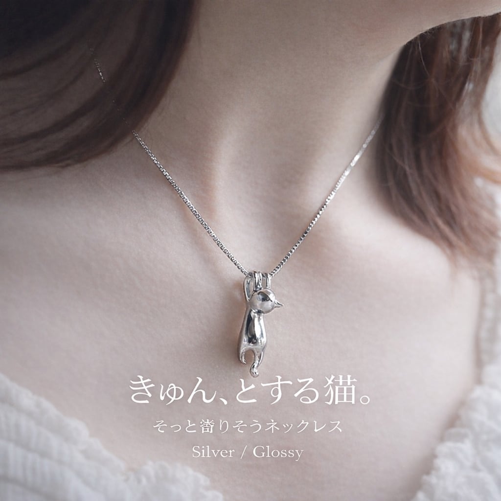 ちょこんと猫モチーフ ネックレス|選べる3カラー(Silver Matte/Silver Glossy/Gold)
